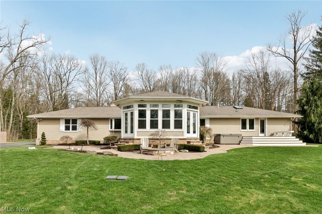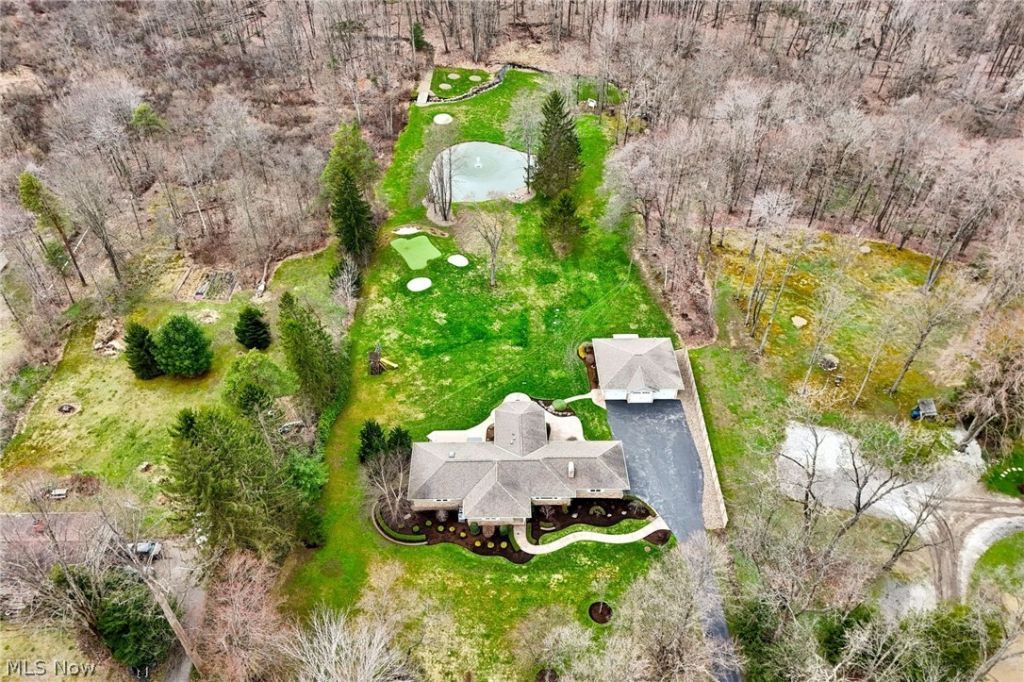 Beautifully updated 3-bedroom, 4-bath home nestled in the heart of Chesterland! Step inside to a welcoming living room featuring a cozy fireplace and a large picture window that fills the space with natural light. The home flows seamlessly into the updated kitchen, complete with stainless steel appliances and a spacious dining area?perfect for enjoying meals while overlooking the stunning backyard. Just off the kitchen, you'll find a generous family room with a wet bar, offering the ideal space for entertaining or simply relaxing while taking in the peaceful, private setting. The first floor features three generously sized bedrooms and two full bathrooms, including a spacious master suite with an updated en-suite bath and two walk-in closets with built-ins. Private composite deck off the master bathroom for morning coffee or relaxing in the hot tub. A convenient first-floor laundry room with ample storage adds to the home's functionality. The finished lower level provides even more living and entertaining space, complete with an additional fireplace, a half bath, and a large, pristine crawl space for extra storage. Car enthusiasts and hobbyists will appreciate the 2-car attached garage along with a separate 3 + car detached garage, which includes heating and its own half bath. Step outside to your own private oasis?beautifully landscaped grounds featuring a tranquil pond and even a golf hole. The patio overlooks the breathtaking views, creating the perfect setting for outdoor entertaining or quiet relaxation.