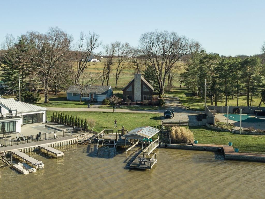 SELLER SAYS SELL!!! Rare opportunity to own a lakefront/waterfront lot complete with a boat dock and two additional parcels just across the road with unobstructed views of the lake and a 1680 square foot home on the South Bank of beautiful Buckeye Lake! Lot sizes are 24x102, 50x120, & 68x110. New roof in 2025! Built in 1999, this two bedroom (possible 3), two bath residential home offers a large family room complete with a cathedral ceiling and a gas log gorgeous fireplace, and a loft that has an area that could be used as a perfect office space or a 3rd bedroom with a lake view! The huge back yard butts up to a farmer's fields so there is lots of privacy and space perfect for backyard barbeques or events! Attached two car garage heated by its own furnace, covered carport area perfect for a boat or lawn/water toys, foyer area, and absolutely HUGE front and side deck areas are perfect for outdoor entertainment and enjoyment! House is priced to sell as is, but buyers are welcome to have any and all inspections in this great bones home that simply needs your TLC and updates to make it the perfect lakefront home!