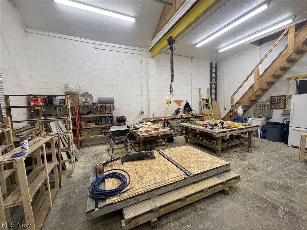 Discover a versatile 840 sq ft warehouse situated on approximately ¼ acre in desirable Beaver Township. This property offers a unique opportunity for contractors, landscapers, hobbyists, or car enthusiasts seeking functional space with room to grow. The building features elevated ceilings, a 14-foot overhead door, and an overhead crane?providing excellent accessibility and functionality for equipment handling, vehicles, or storage needs. Inside, a mezzanine-level office adds convenience for workspace or administrative use. The structure is equipped with gas heat and electricity, allowing for year-round use. The exterior includes a fenced-in rear area?ideal for secure storage or outdoor operations?as well as a private well supplying water to the property. With its flexible layout and practical amenities, this property is well-suited for a variety of business or personal uses. Don't miss this opportunity to own a highly functional space with great potential in a convenient Beaver Township location.