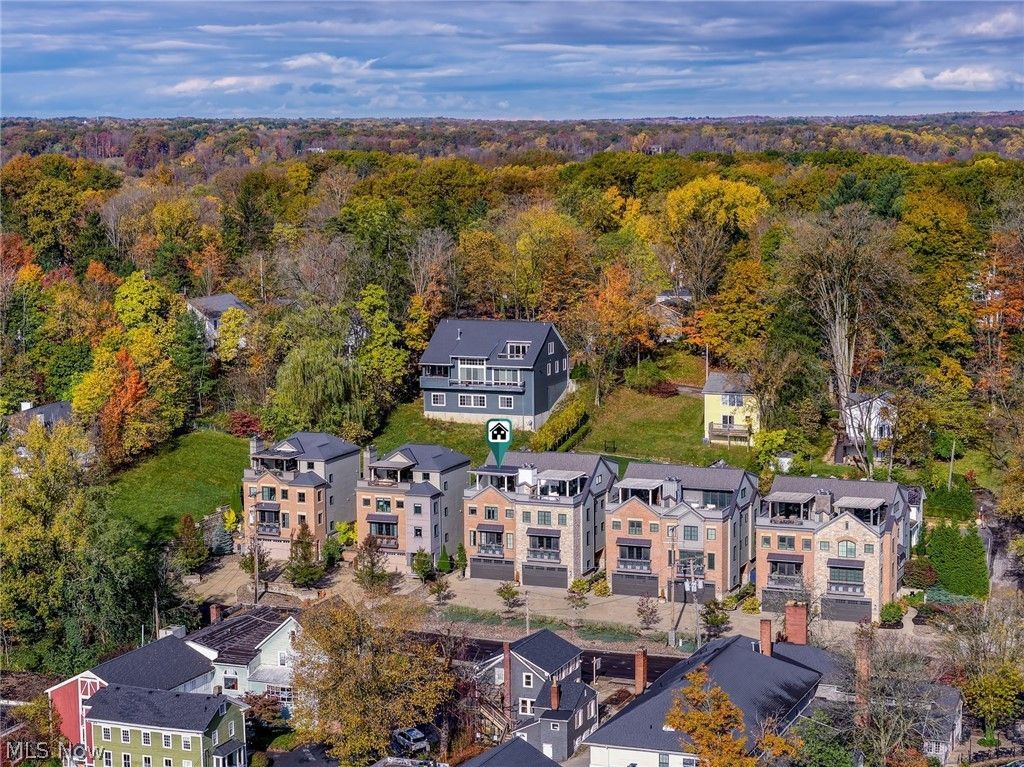 Located in the heart of Chagrin Falls, this extraordinary 4 level residence has been renovated and decorated to utter perfection by the current owner. No expense was spared and no detail was overlooked throughout. A charming and beautifully landscaped courtyard welcomes one into the foyer through a custom front door. One will immediately notice the exquisite decor, highest end finishes, and the meticulous attention to detail. On this entry level there is an elevator with access to all 4 floors, a home gym with rubber floor, and a grand staircase with a custom runner. The main level of this home is an entertainer's dream and features the most extraordinarily designed dream kitchen. Here you will find the highest level of finishes including custom inset cabinets, a huge center-island, Calcutta Gold marble countertops, professional stainless-steel appliances, a wine cooler, ice maker, and spectacular decorative hood. Off of the kitchen is a beautiful bar area which is perfect for entertaining. The main living area includes a fabulous dining room with custom banquette which opens into the main great room. Here you will find a magnificent raised hearth which is flanked by custom built-ins and floor to ceiling windows which overlook the village. The owner's suite in this unit occupies an entire floor and is the definition of Luxury! The bedroom is a quiet retreat, the marble bathroom is second to none (steam shower, dual vanities, heated floor, heated towel rack, Porto Romano sconces, and jetted tub), two walk-in dressing rooms, and even a private laundry room. The top level is a retreat for guests with a bedroom area, media room, spectacular bathroom, and access to the outdoor veranda. This beautiful, covered terrace has a stone fireplace and built-in bar area with sink. This one-of-a-kind residence is truly a showplace.