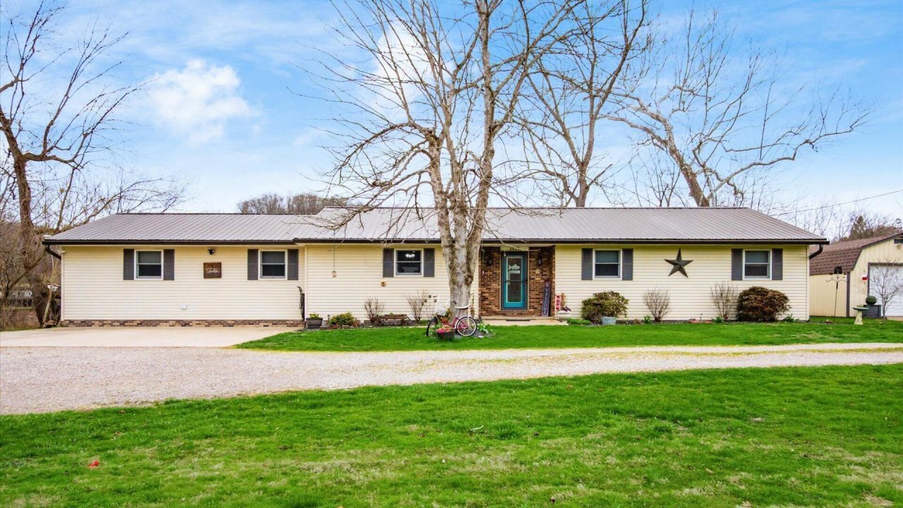 Perfectly positioned along the scenic Muskingum River, this exceptional riverfront retreat offers the ultimate blend of everyday comfort and unforgettable entertaining, whether as a full-time residence or the perfect weekend getaway. Tucked away on a quiet private drive with over an acre of beautifully maintained ground, the outdoor living space is nothing short of spectacular--featuring a sprawling rear deck, partially covered porch, and a thoughtfully designed patio with a covered pergola and fire pit, all overlooking the water and leading down to your private boat dock for effortless river access. Step inside to a welcoming foyer that opens into a sun-filled living area accented by wood beams, new flooring, and an abundance of natural light flowing seamlessly to the rear porch. The formal dining room connects to a stunning, fully updated eat-in kitchen showcasing quartz countertops, tile backsplash, soft-close cabinetry, built-in appliances, gas range, center island with seating, deep storage drawers, and a pantry. Just beyond, you'll find a walk-in storage closet before entering the oversized primary suite--complete with a fireplace, sitting area, private deck access, tray ceilings, office space, and a luxurious en-suite bath with double vanities, quartz tops, and extensive cabinetry. The spacious, updated laundry room connects to a massive walk-in closet with multi-tier shelving. The opposite wing offers 3 additional bedrooms, including a second suite with walk-in closet, along with 2 full baths. Throughout the home, enjoy new LVP flooring, solid six-panel wood doors, and updated plumbing and lighting fixtures. A fully concreted crawlspace provides excellent storage with interior access, while the detached garage and storage shed add even more functionality. Meticulously cared for and thoughtfully upgraded, this is truly a standout riverfront property designed for relaxation, entertaining, and making lasting memories.
