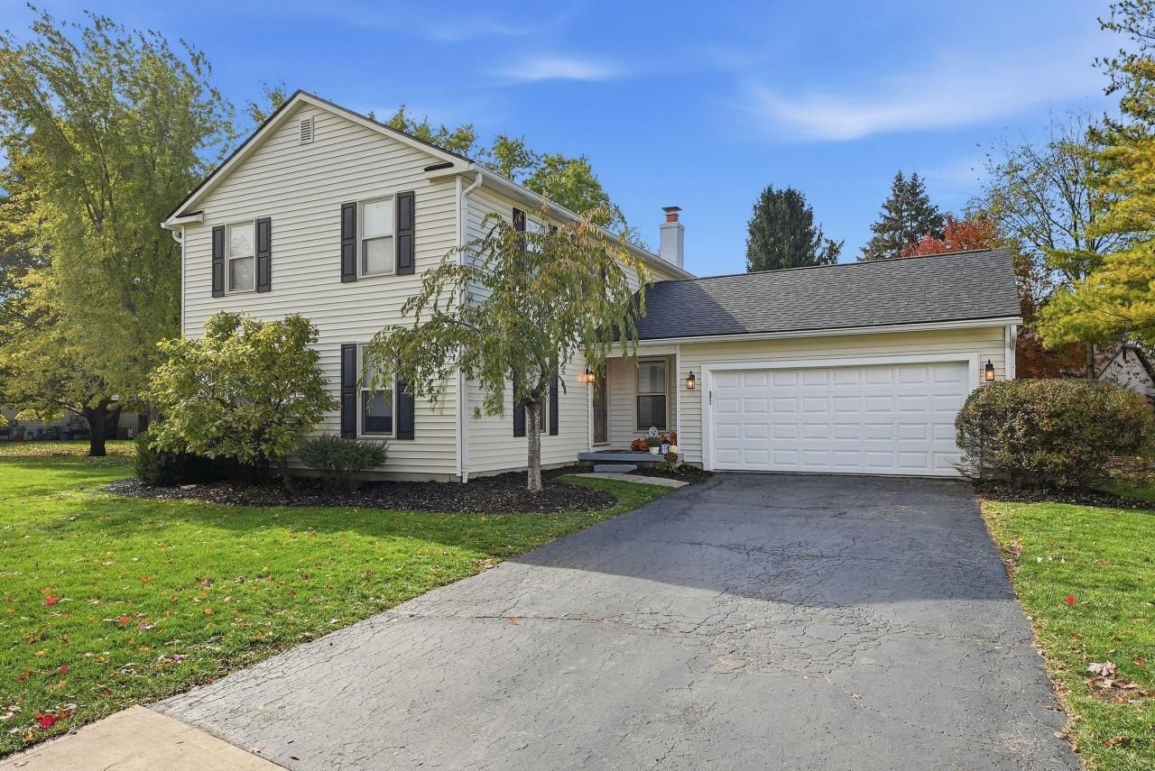 Welcome to this private, spacious and beautiful Dublin home located in the highly sought after neighborhood of Hemingway Village. Nestled at the end of a cul-de-sac on almost 1/3 acre lot, this 4 bedroom, 2.5 bathroom home offers entertaining space both inside and out. Upon entering, you'll notice the open foyer with wood flooring and neutral paint throughout. The foyer opens to the beautiful living room with plenty of natural light. The private dining room sits right off of the kitchen, which was previously renovated to include granite counters and tiled backsplash. Another formal eating and dining space accompany the kitchen, with a back patio sliding door leading to the scenic backyard. The family room presents a relaxed and spacious environment, including the exposed stone fireplace - just in time for this wintry weather! The laundry room and a half bathroom complete the entry level. Upstairs, a large primary bedroom with attached bathroom, exposed vanity and walk in closet are the focal point. Professionally cleaned carpet compliments the 3 remaining upstairs bedrooms, and the upstairs full bathroom includes a shower/tub combo. The basement has been recently renovated to indlude fresh paint and new carpet in the finished space. The unfinished portion of the basement allows for additional storage space. Outside, entertainment space includes a back patio, plush yard space and a professional-grade playground! HVAC (2022), Roof, siding, gutters (2019), Hot water tank (2018). Make this beautiful Dublin, OH home, your new home today!