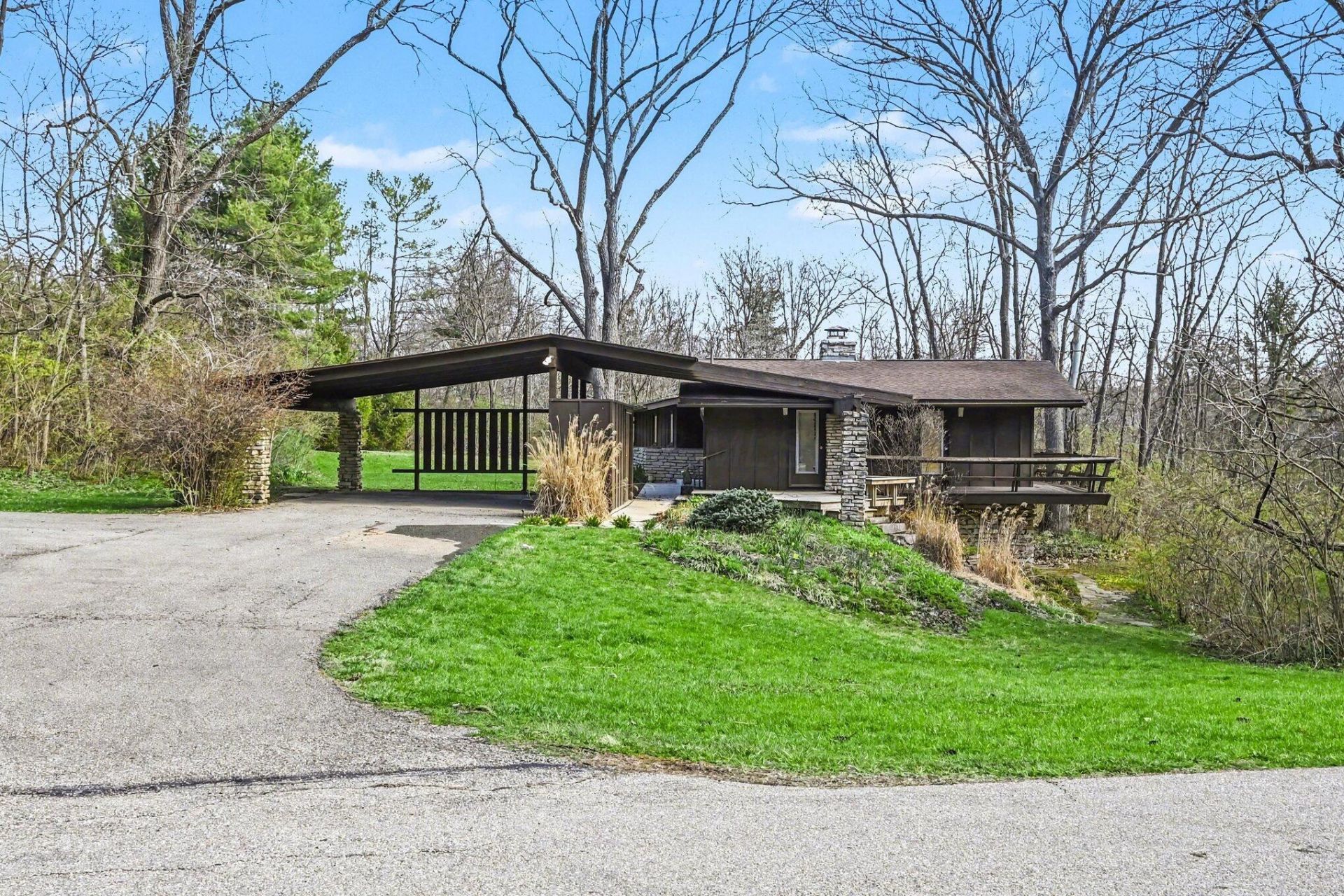 Open House Sunday, April 5, 1:00 to 3:00! Tucked away on a gorgeous 1.1 acre wooded ravine lot in Worthington Schools, this distinctive 4-bedroom, 2-full bath home blends warmth, drama, and opportunity for equity-building improvement. Inside you'll find a vaulted great room, wood floors, and a striking stone fireplace. The renovated kitchen opens to the expansive great room, creating a wonderful space for entertaining. Walls of windows and multiple sliders bring the peaceful wooded setting indoors. The first-floor bath has also been updated. The partly finished walkout lower level with its own fireplace offers flexible living space and potential for an additional bedroom. This unique property does need some work, reflected in the price, offering a great opportunity to add value and make it your own in a beautiful natural setting.