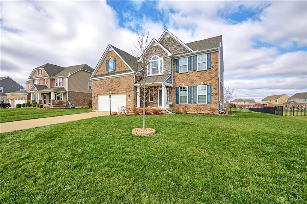 Welcome to this stunning home situated on a beautifully fenced lot of over half an acre, nestled in one of the most desirable neighborhoods within the Springboro School District. From the inviting covered front porch, step inside to find a bright and elegant dining room, perfect for hosting gatherings. The main level also features a convenient half bath, a functional mudroom off the garage entry, and an open-concept layout designed for modern living.The kitchen is a true centerpiece, showcasing rich 42" cabinetry, granite countertops, stainless steel appliances, and an oversized island ideal for both everyday living and entertaining. It flows seamlessly into the spacious great room, complete with a cozy gas fireplace. Just beyond, features an extra bonus room off of the great room. Located just off the kitchen, is light filled breakfast area that opens to a beautifully landscaped backyard featuring a patio with a pergola—an ideal setting for relaxing or entertaining guests.Upstairs, you’ll find four generously sized bedrooms, a versatile bonus room, and the convenience of a second-floor laundry room (washer & dryer included!). The hall bath offers a dual-sink vanity and a tub/shower combination. The expansive primary suite is a true retreat, featuring a spa-like ensuite with dual vanities, a walk-in shower, garden tub, private water closet, and a large walk-in closet.The finished basement adds even more living space, with expansive recreation areas, a full bathroom, and plenty of unfinished storage. A rough-in for a wet bar provides additional potential for customization.Residents of this community enjoy exceptional amenities, including two heated pools, a playground, basketball court, fitness center, clubhouse, and miles of scenic walking trails. Located in Clearcreek Township, this home also offers the added benefit of no city income taxes.This exceptional property truly has it all—don’t miss your opportunity to make it yours!