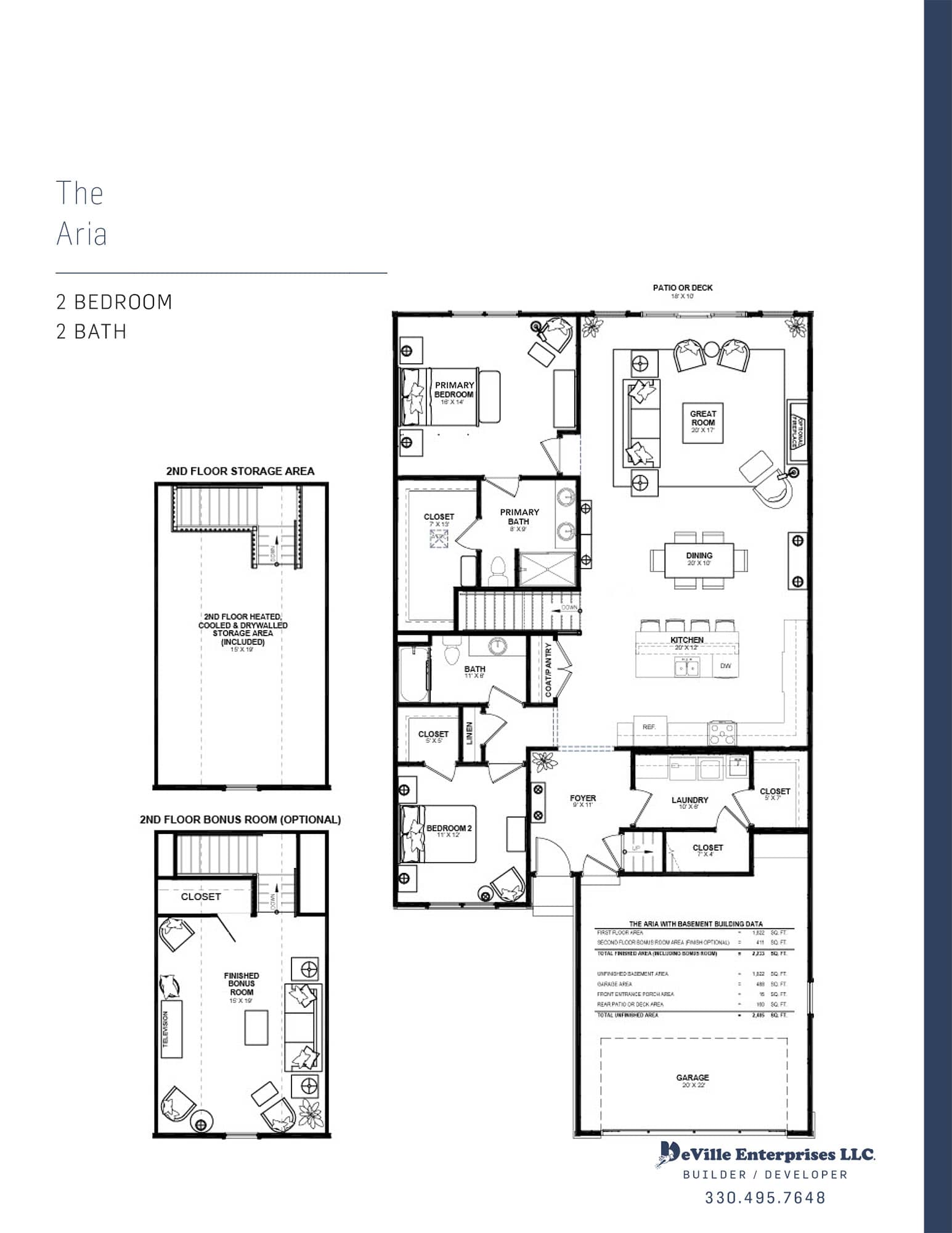 Practicality meets style with a 10’ x 6’ first-floor laundry room, making household chores effortless. The Aria model also includes a 15’ x 24’ bonus room for an additional 411 sq ft, adaptable to your needs as a guest bedroom, home office, or cozy den, bringing the total living space to 2,233 sq ft. This home can be built with or without a basement, offering flexible options to suit your lifestyle.